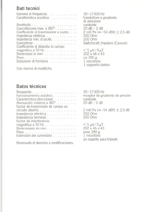 2 mV/Pa(b-54 dBV):t 2,5 dB