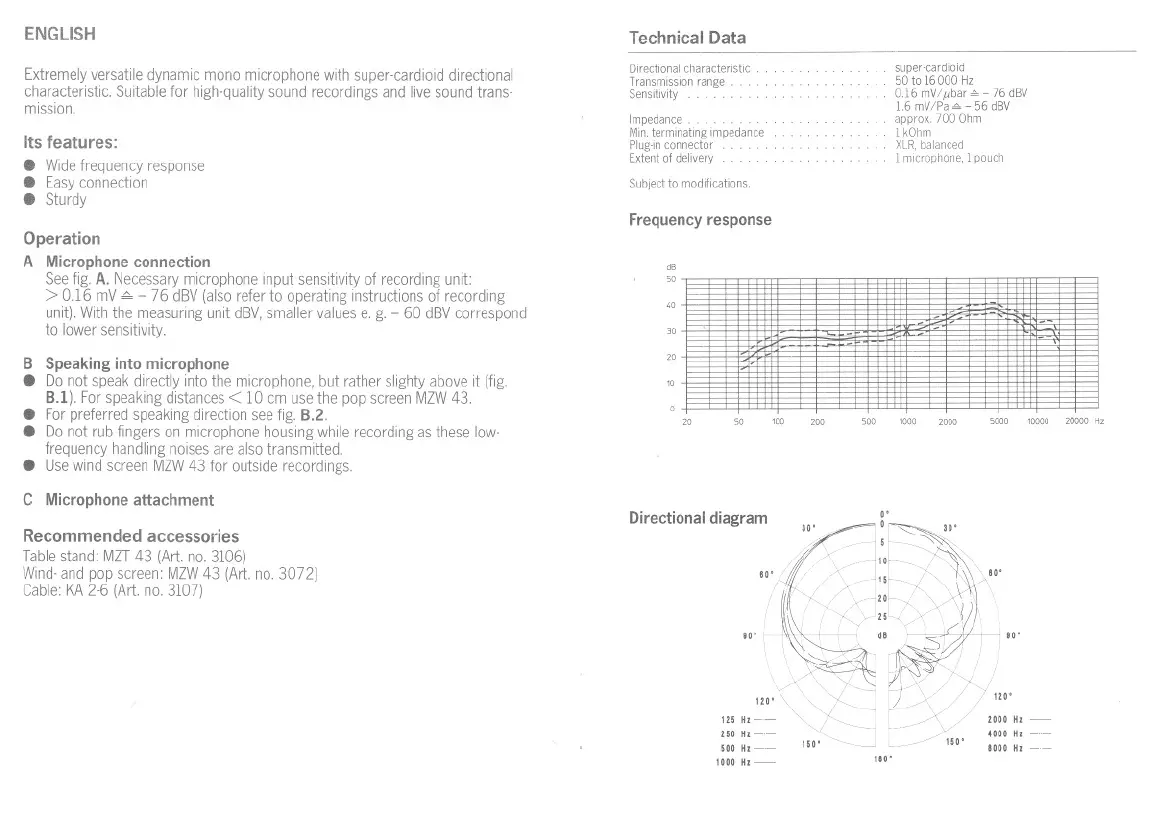 Sennheiser MD 43 - Microphone Operation; Microphone Connection; Speaking into Microphone; Microphone Attachment