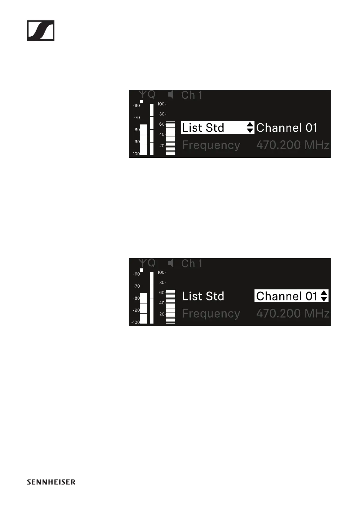 The frequency assigned to the channel is displayed.