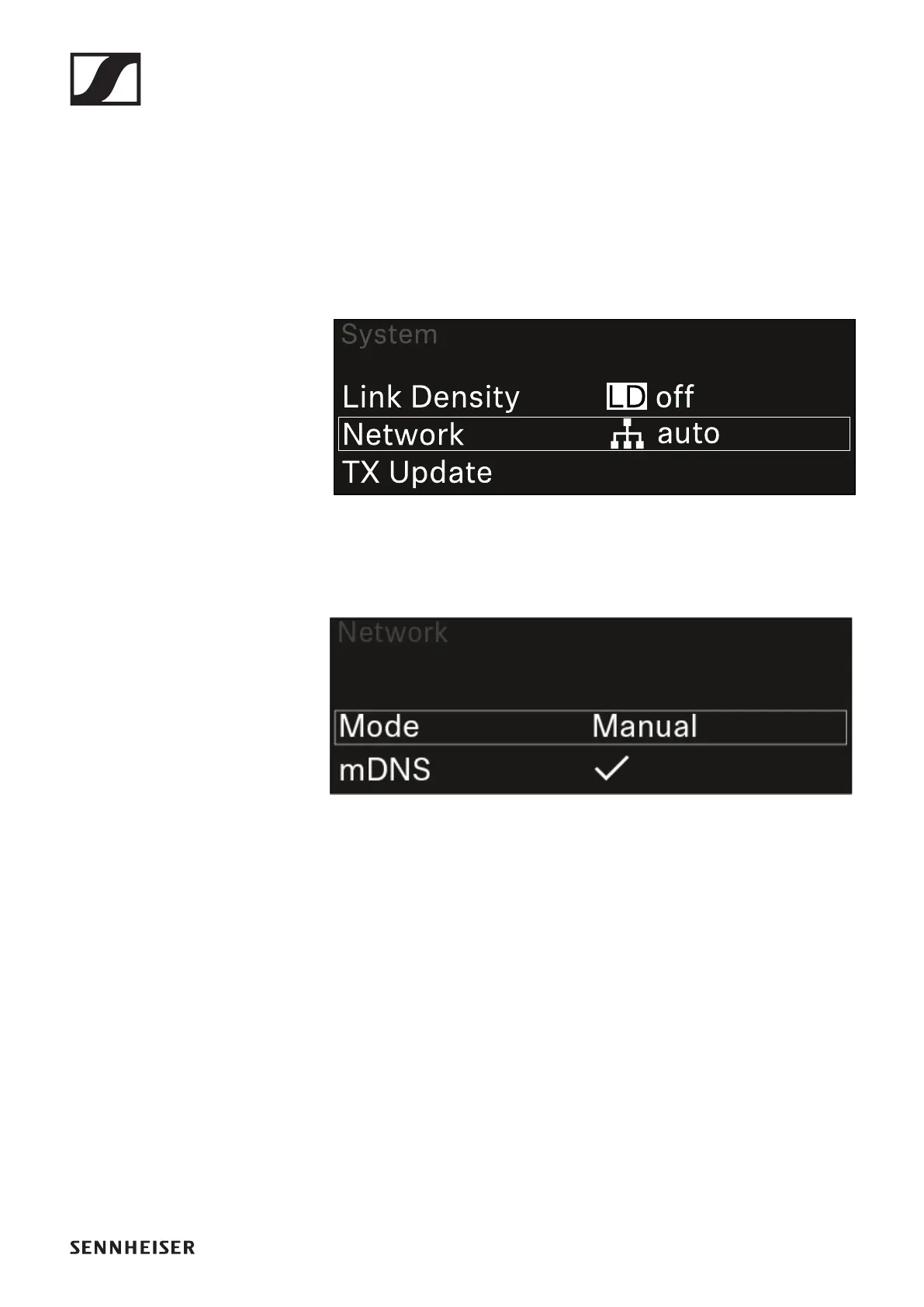 ▷ In the System menu, navigate to the Network menu item.