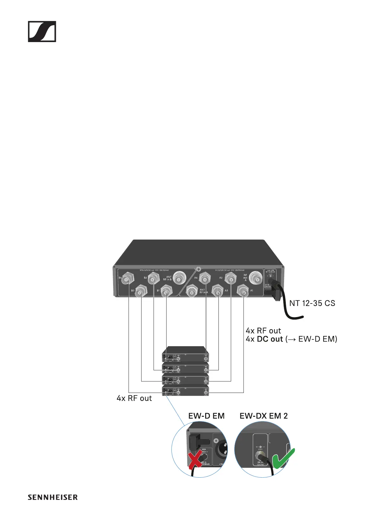You can connect and operate up to four EW-D EM or EW-