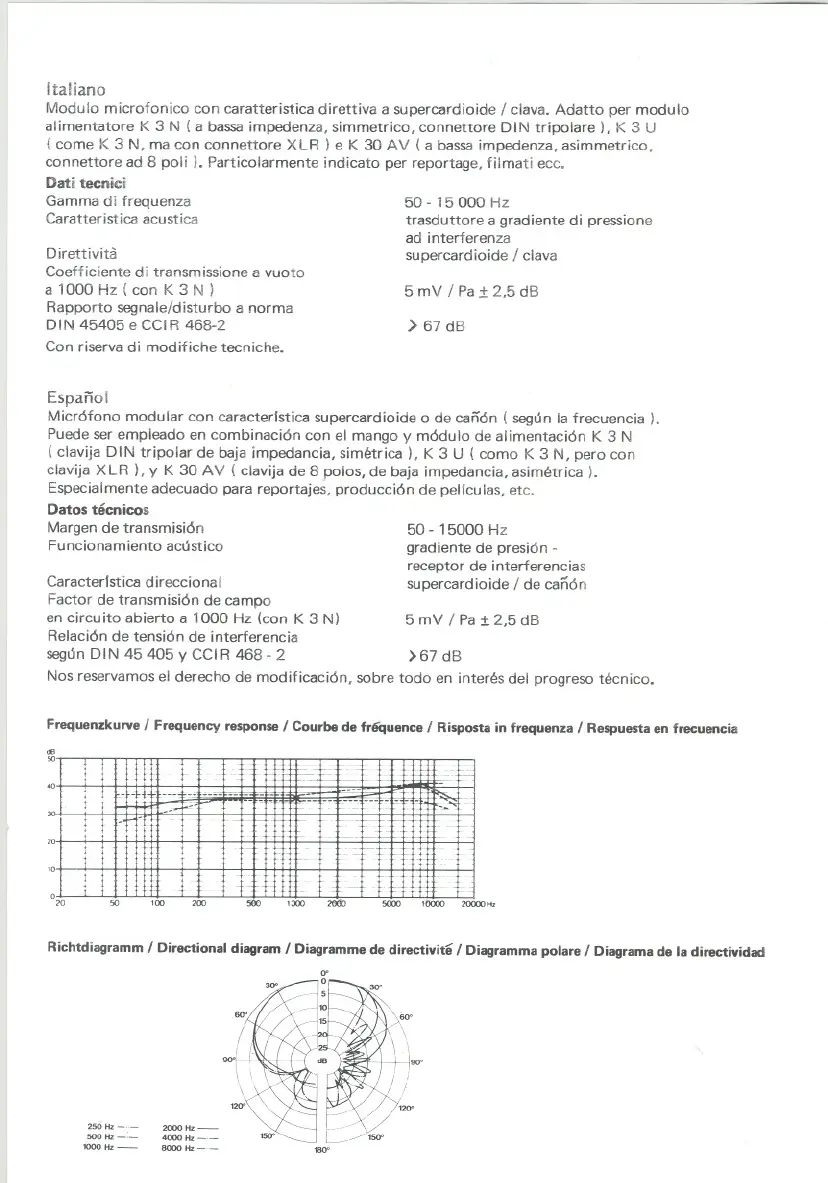 ( come K 3 N, ma con connettore XLR ) e K 30 AV (a bassa impedenza, asimmetrico,