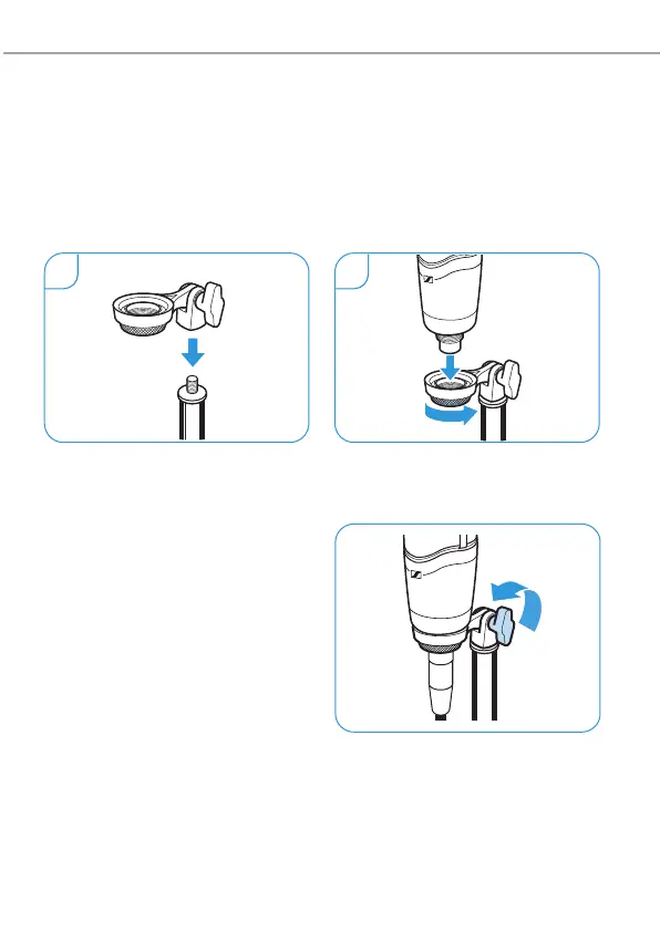 1 Screw the MZQ 4 microphone clamp to a solid and sturdy stand.