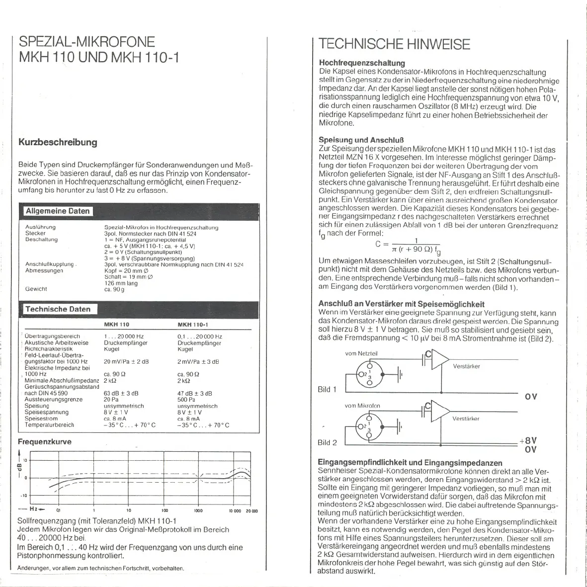 Sollfrequenzgang (mit Toleranzfeld) MKH110-1