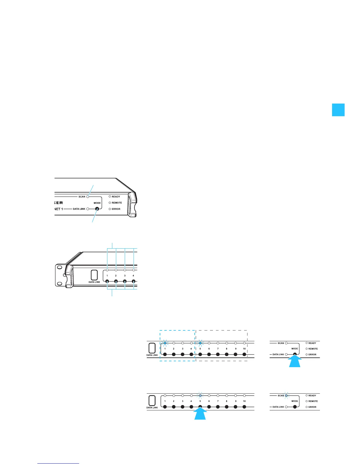 pressing the MODE button , the green “CHANNEL“ LEDs for the first rack-