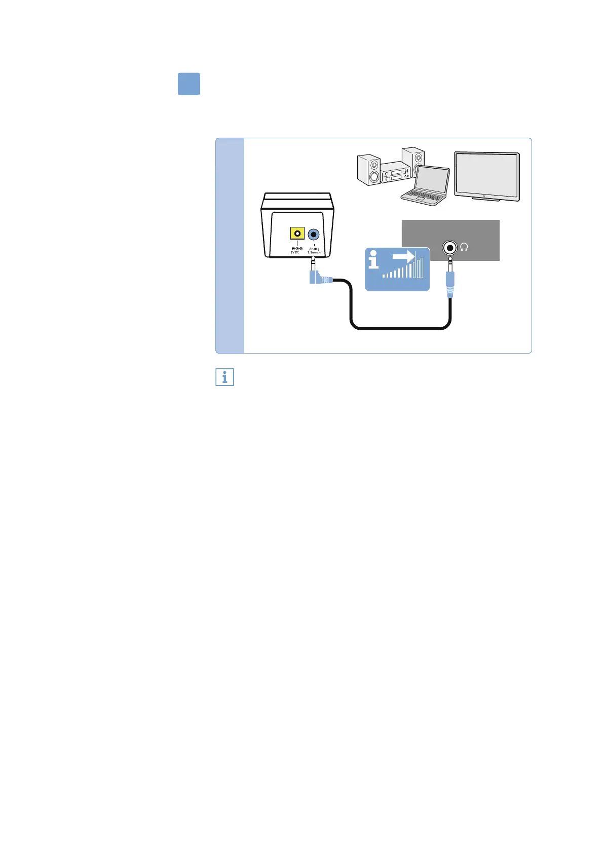 왘 Connect the stereo audio cable to the blue Analog 3.5 mm In