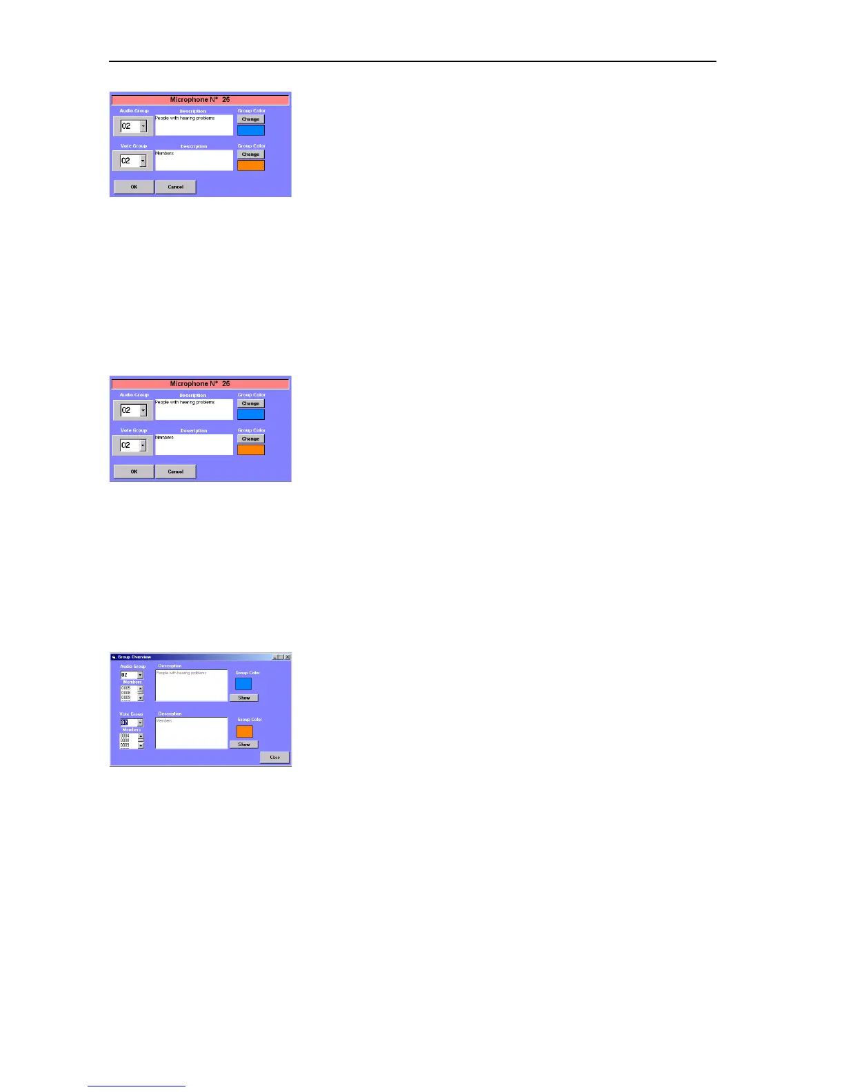 and the group color of the assigned audio group and voting group are