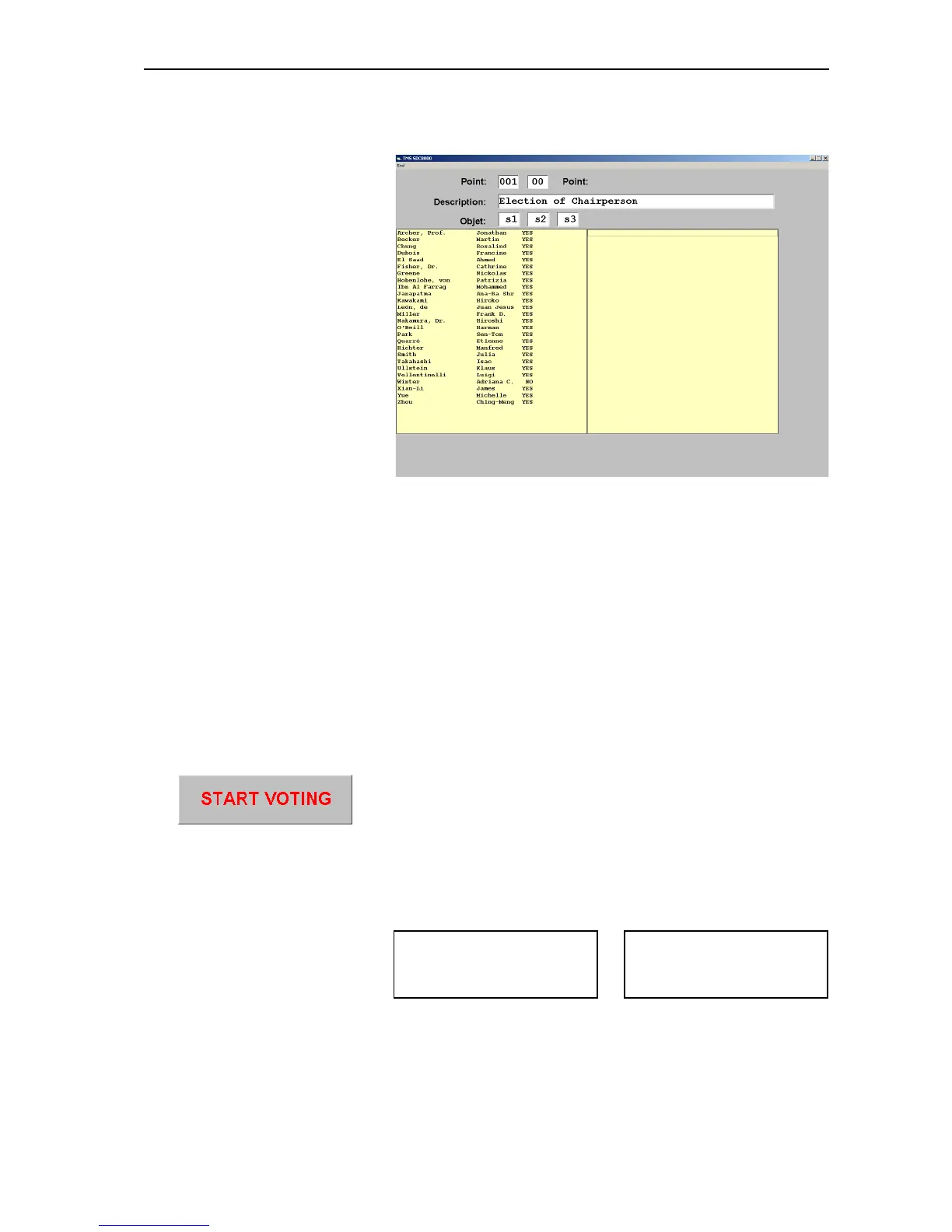 display of the voting results on the video PC” on page 67).