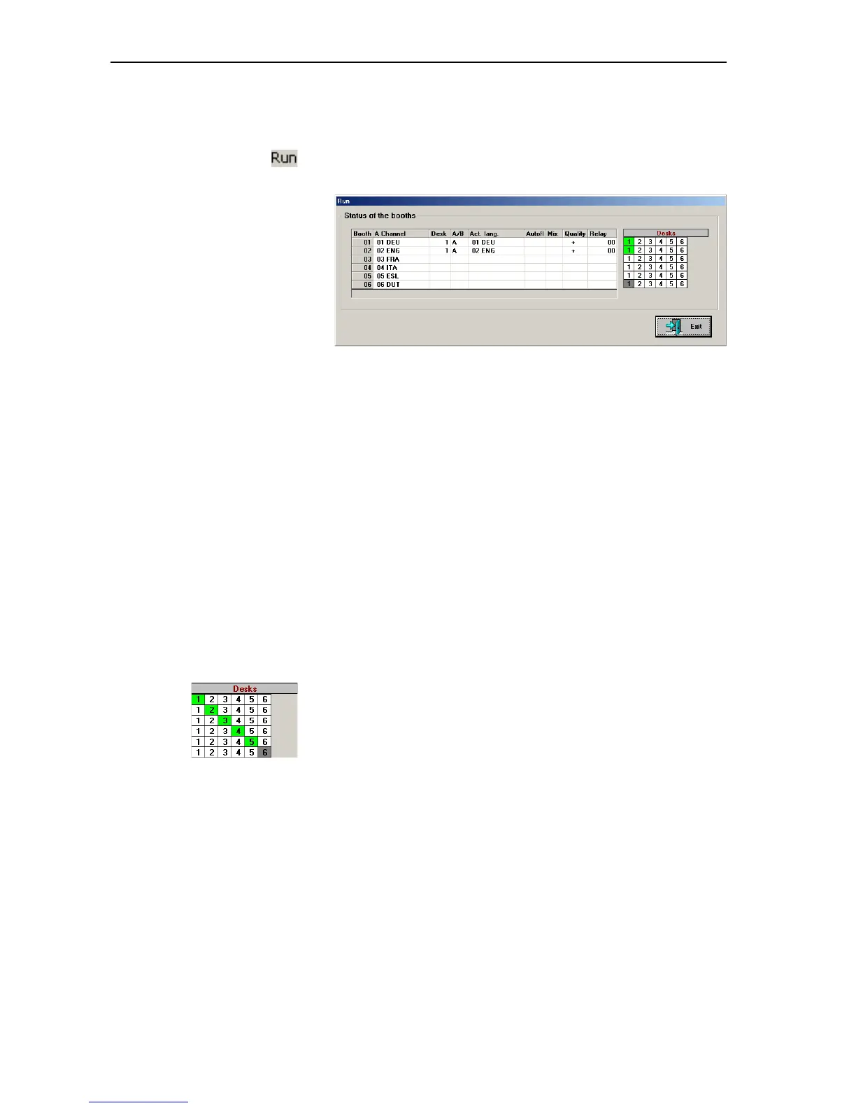 y in the “Desk” column: the currently active console in this booth