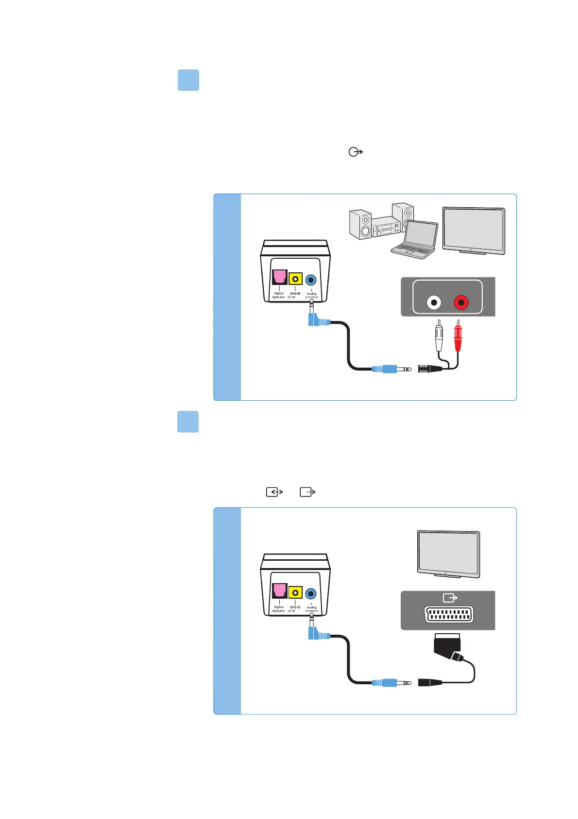 b Connect the stereo audio cable to the blue 3.5 mm jack