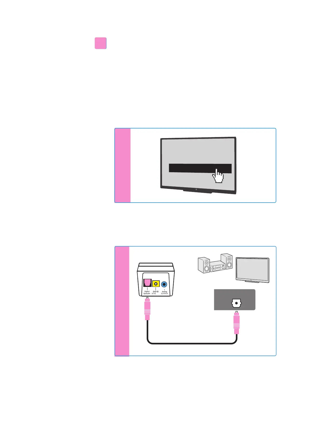 b Connect the optical digital cable to the pink Digital Optical