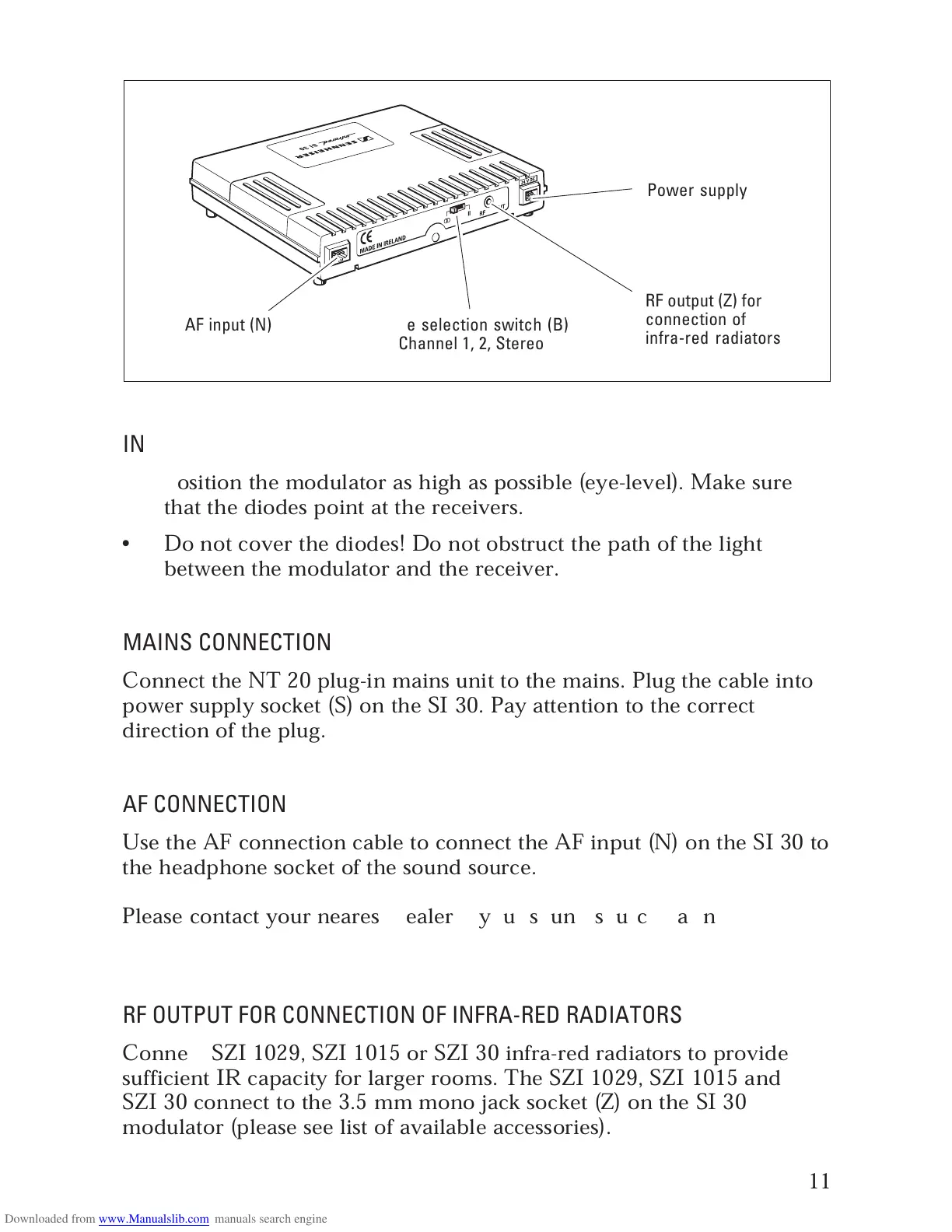power supply socket (S) on the SI 30. Pay attention to the correct