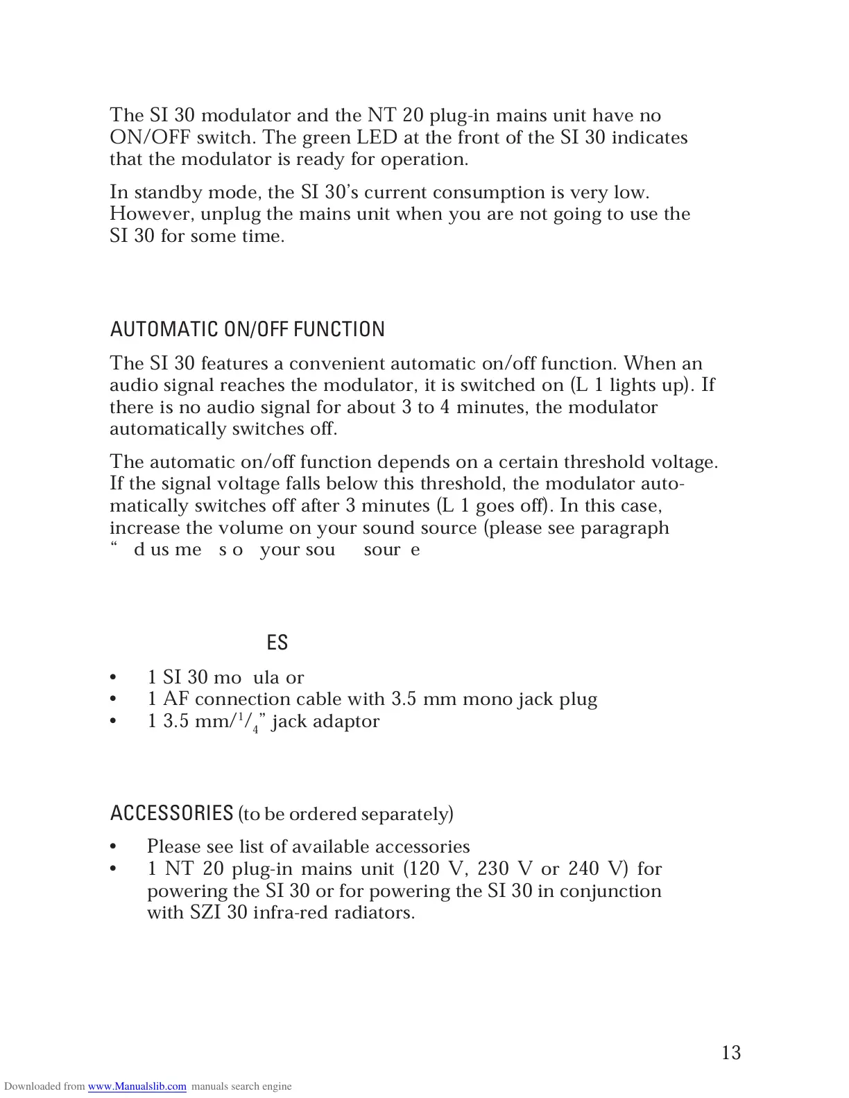 The SI 30 modulator and the NT 20 plug-in mains unit have no