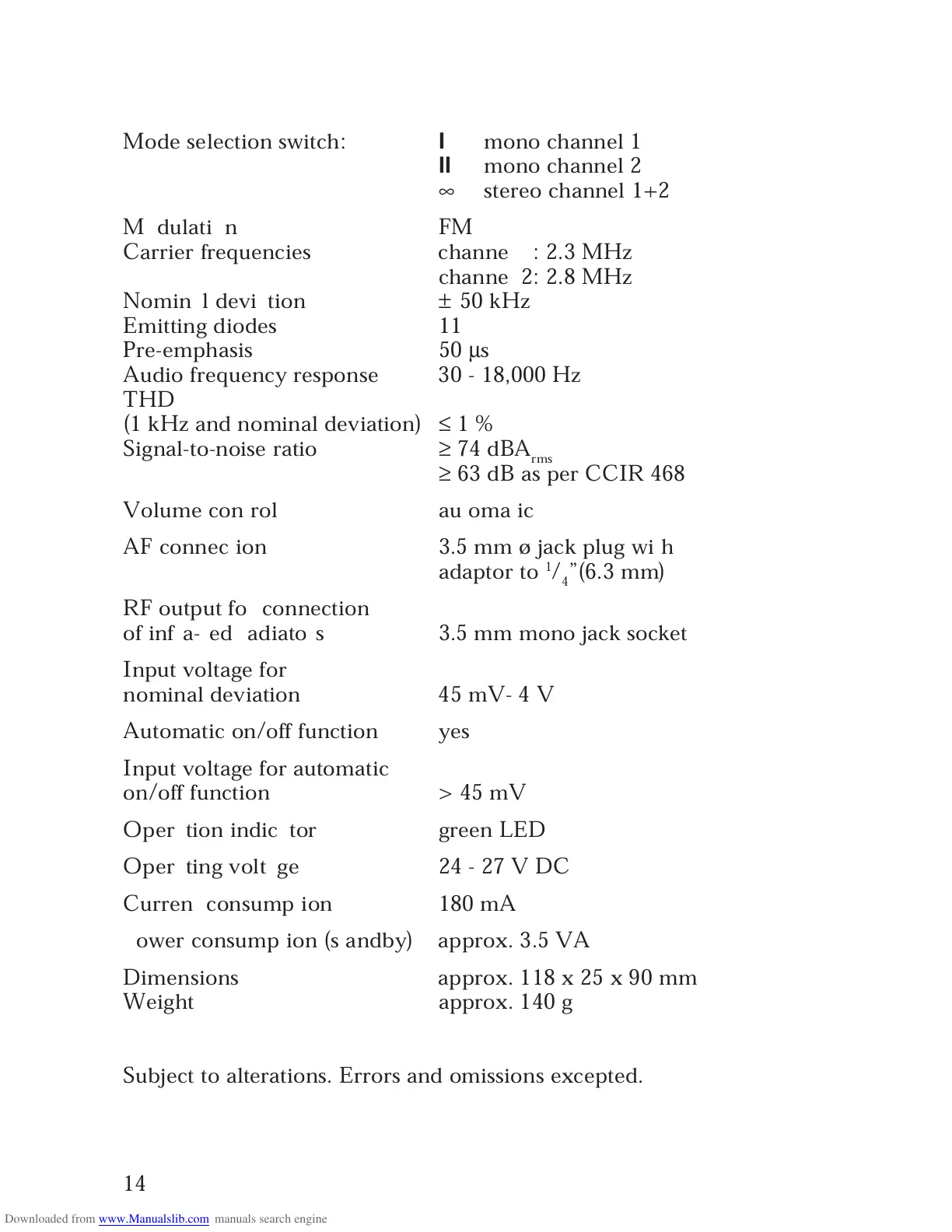 Carrier frequencies channel 1: 2.3 MHz