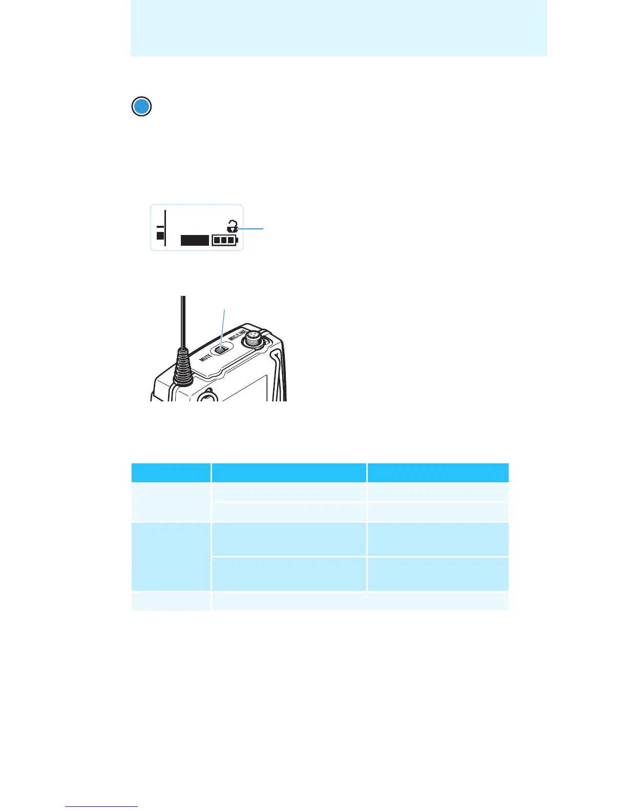 The bodypack transmitter reacts as indicated in the table.