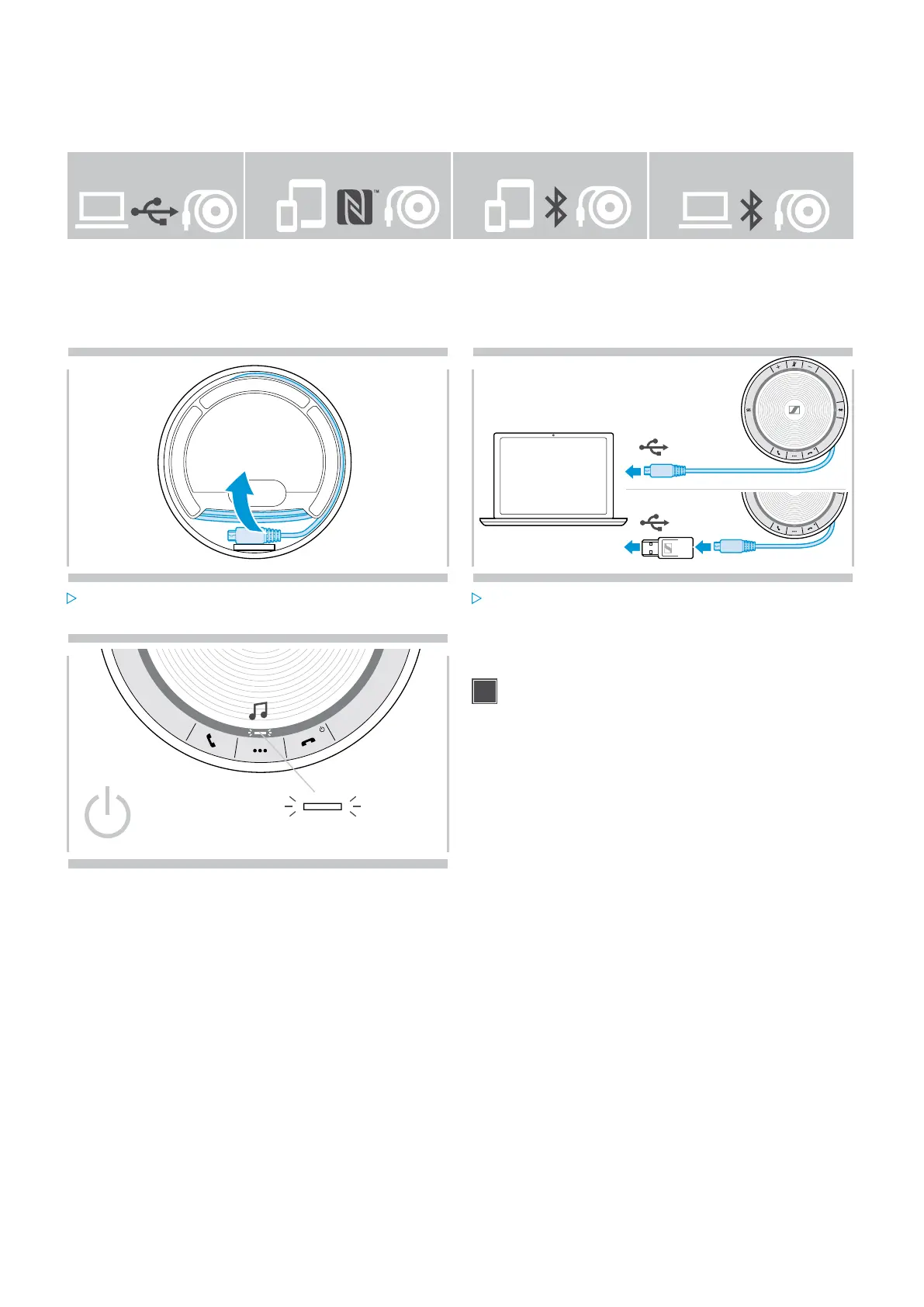 A: USB cable B: Bluetooth through NFC™ C: Bluetooth® D: Bluetooth® through