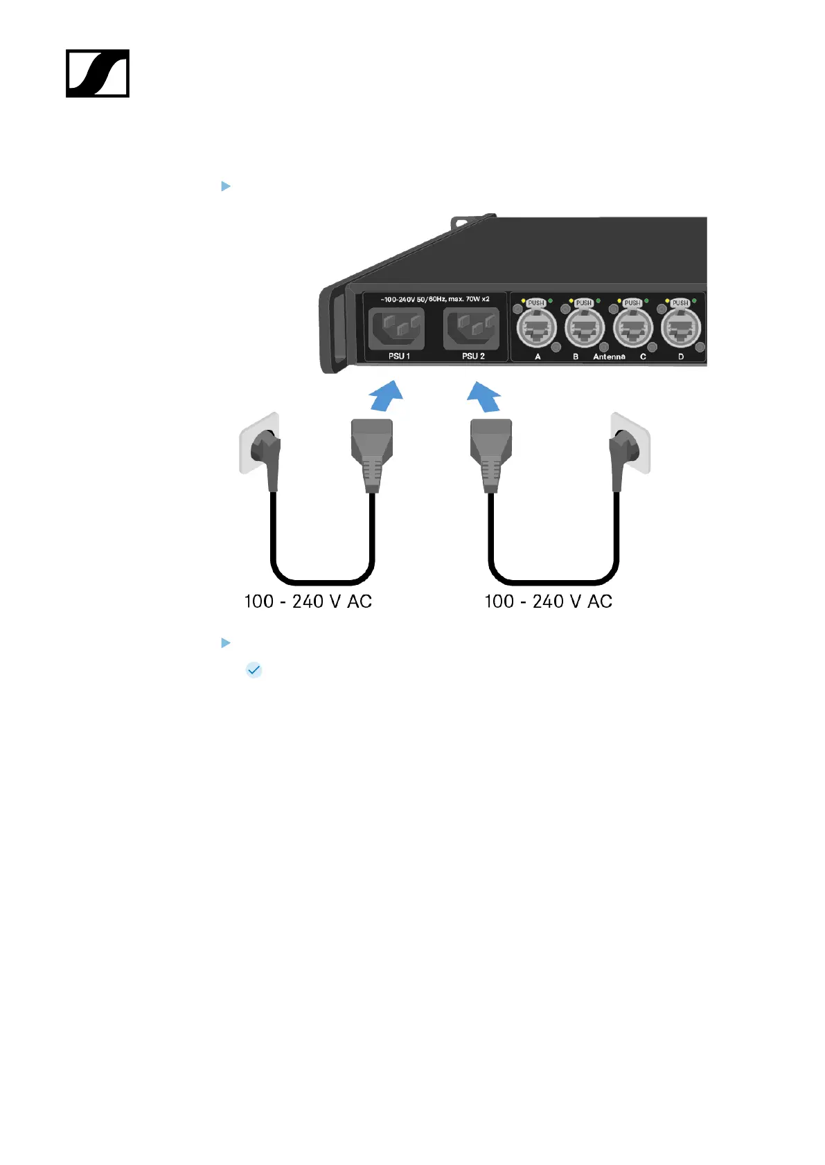 Connect one mains cable to the power socket on the rear side of the Base Station.