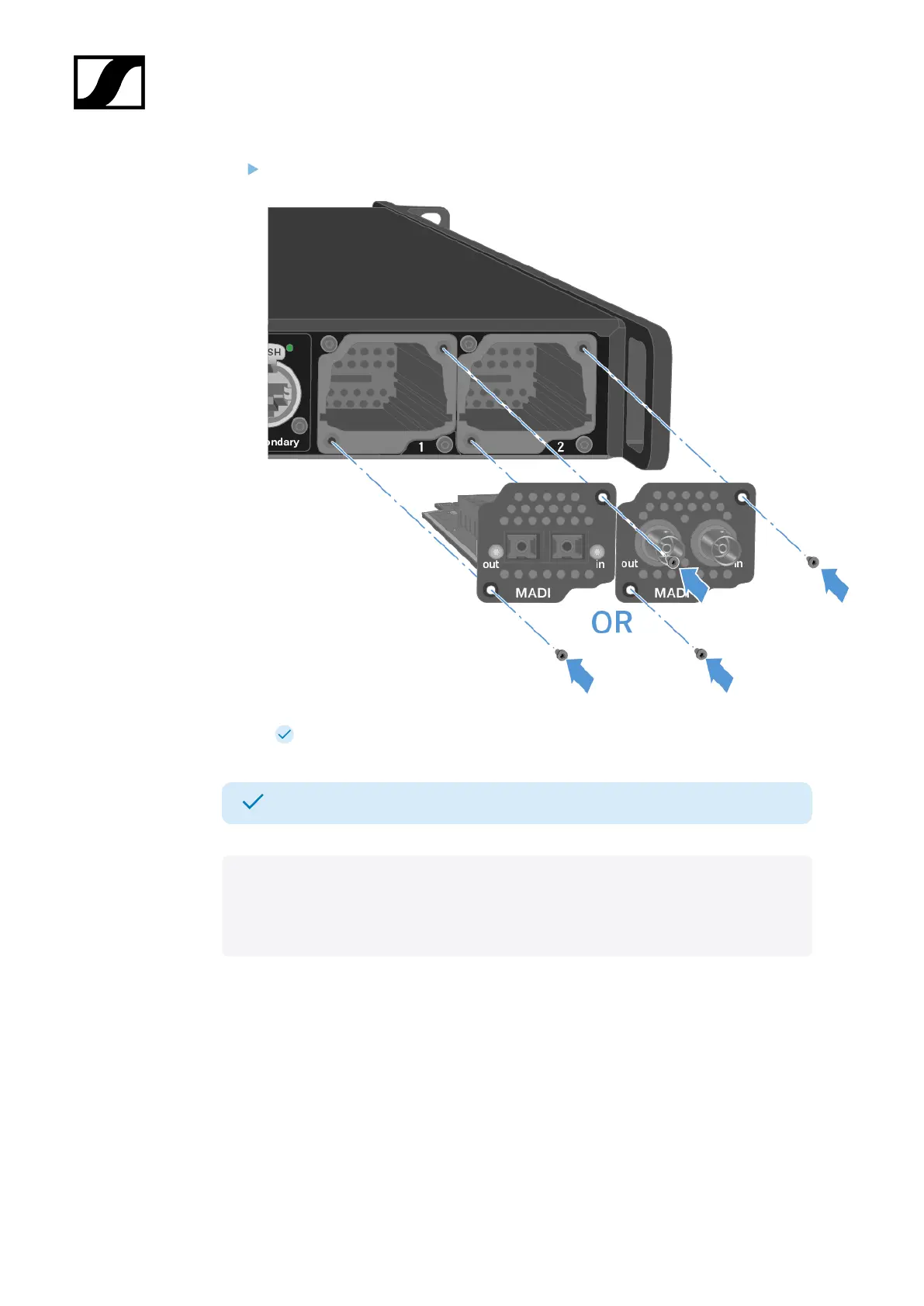 Tightly screw on the MADI card with max. 65 cNm +/-10%.