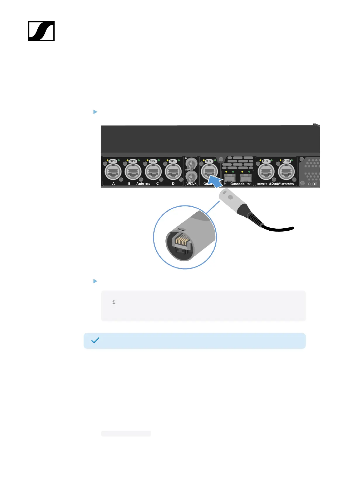 Plug one side of the network cable into the Control socket.