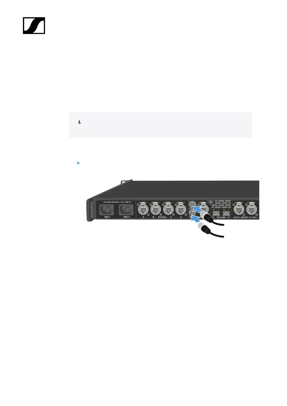 Use a coaxial BNC cable (75 Ω) to connect the external word clock to the word clock