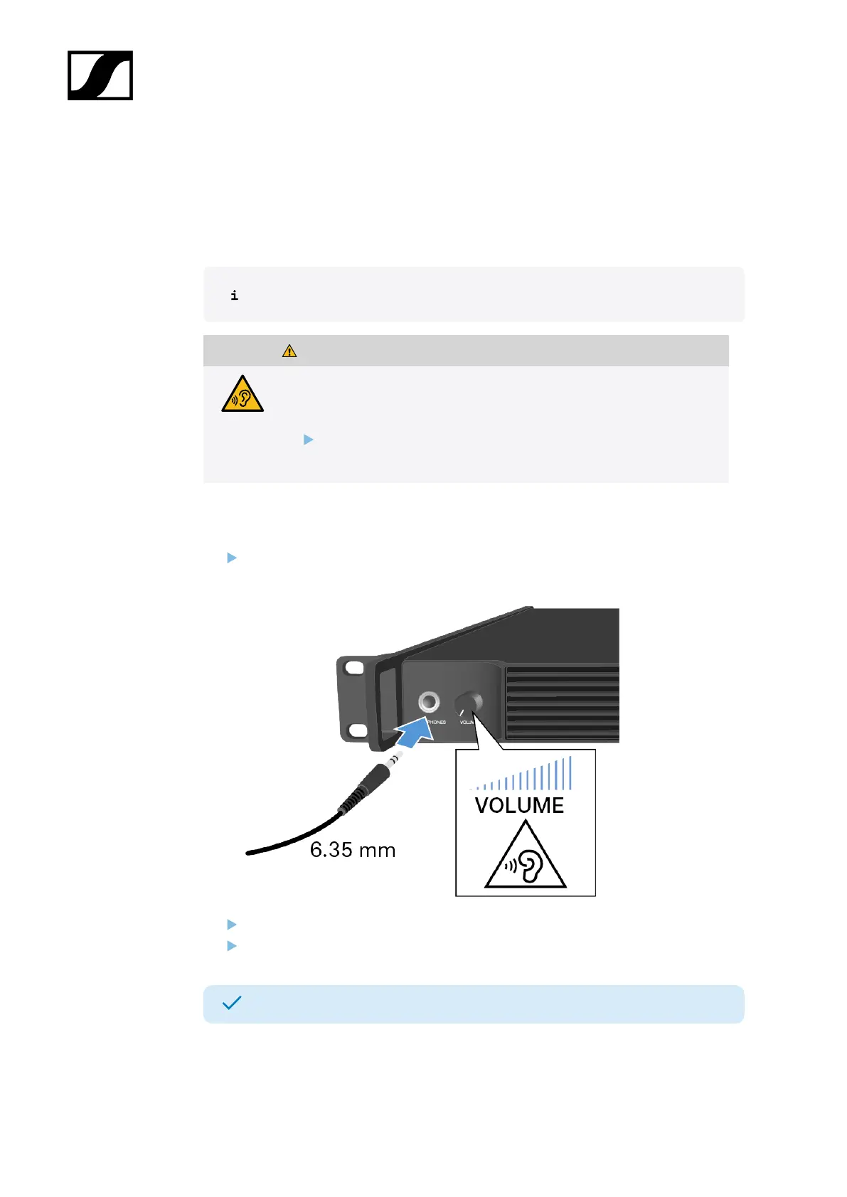 Control the volume by turning the VOLUME control next to the HEADPHONES socket.