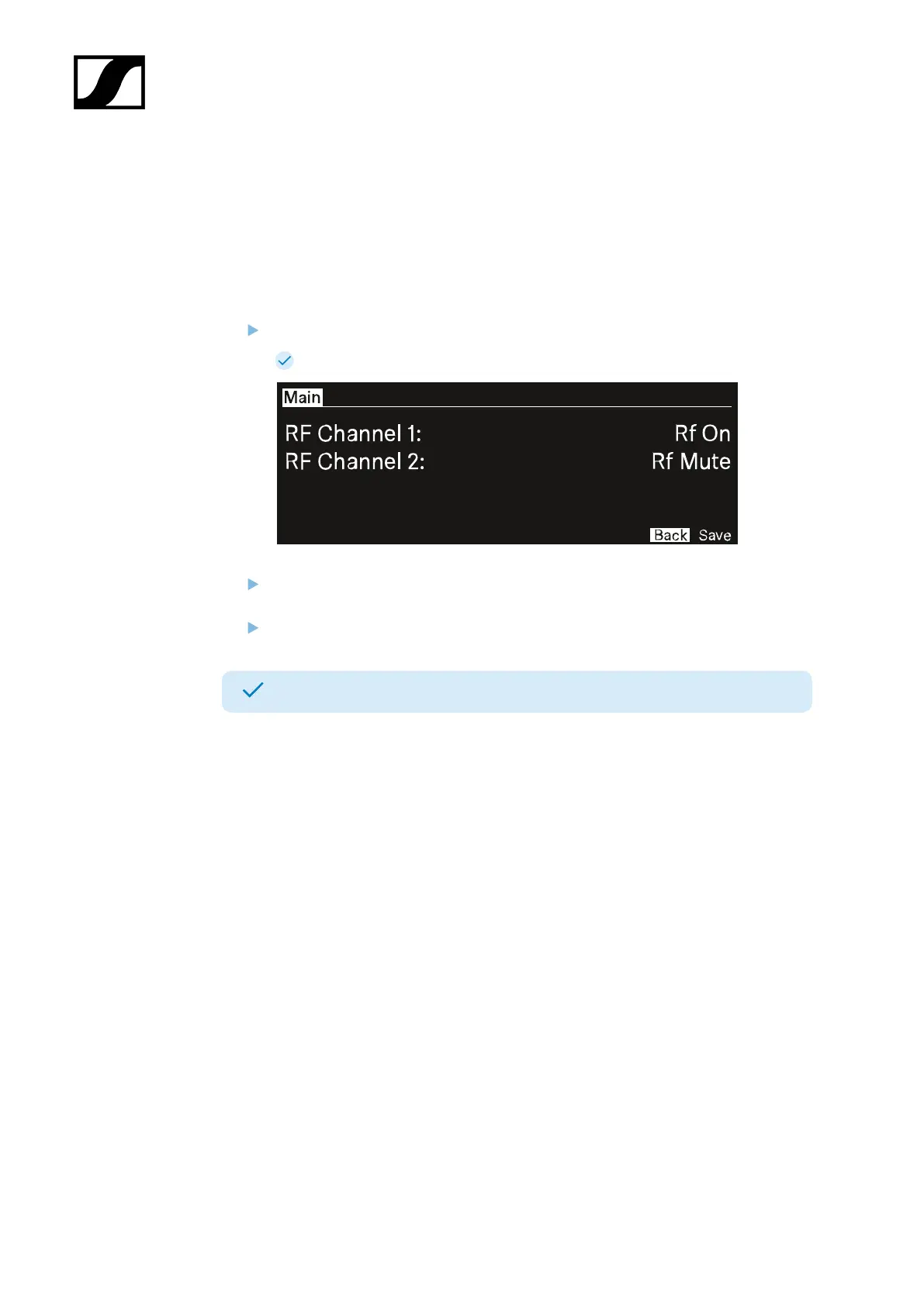 To mute/unmute the RF channel: