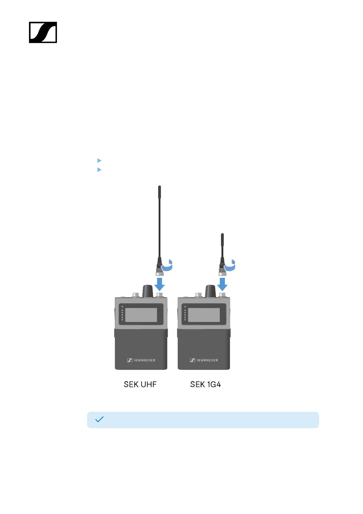 Tightly screw the antenna coupling ring onto the SEK antenna socket.