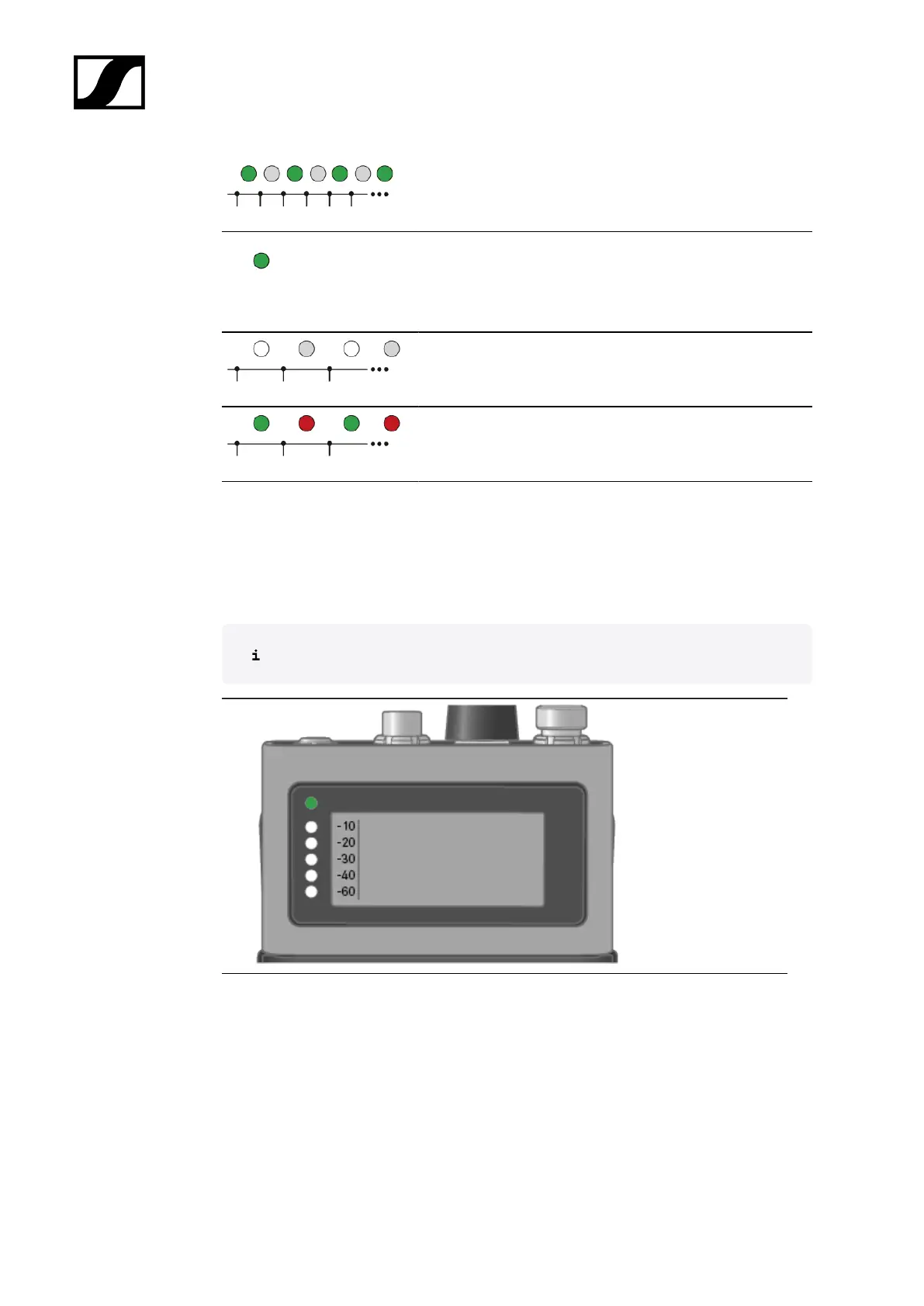 The LEDs provide information about the mic line input level, if a microphone or instrument is