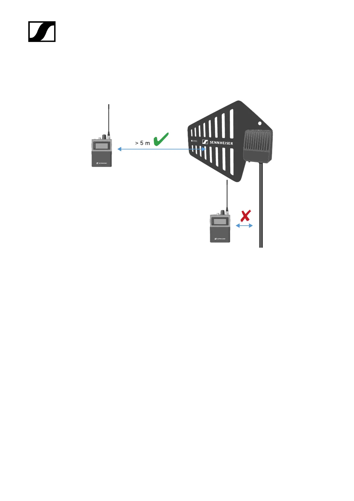 Keep a distance more than 5 m (169.85") between the antenna and the mobile device.