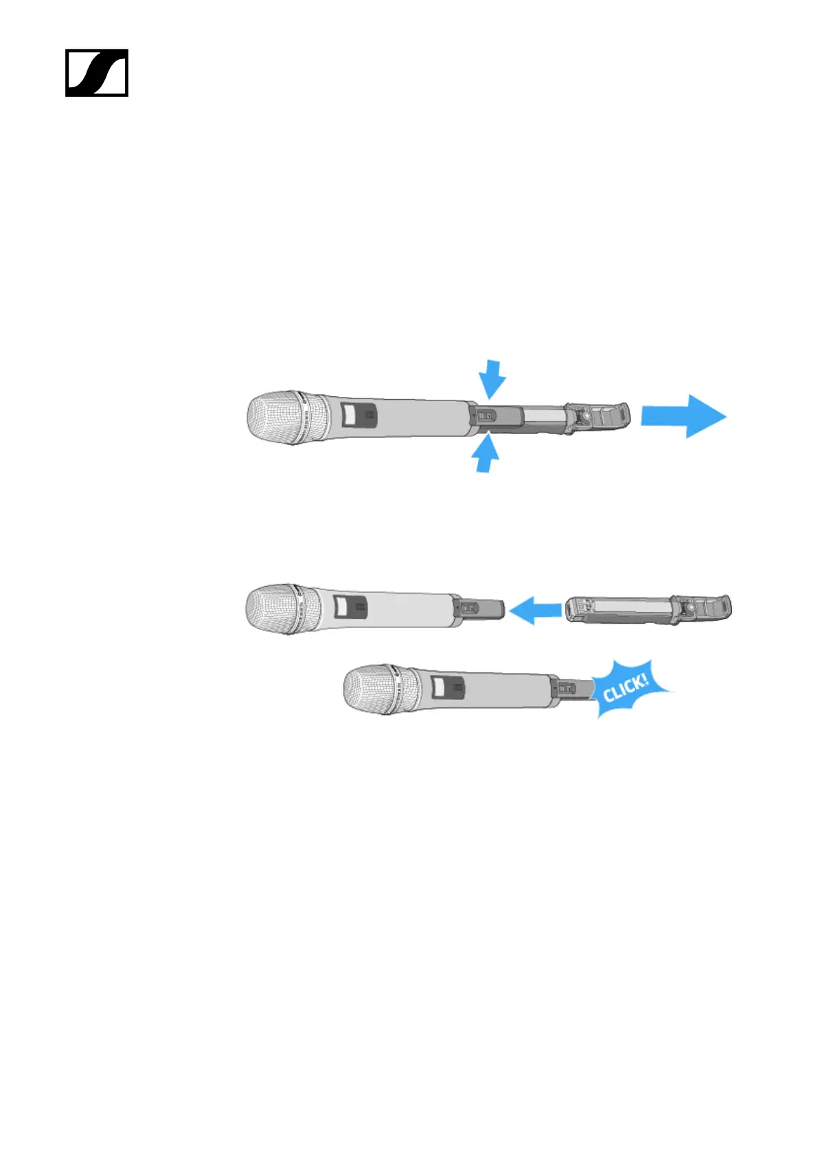 ▷ Slide the accupack onto the handheld transmitter as shown.
