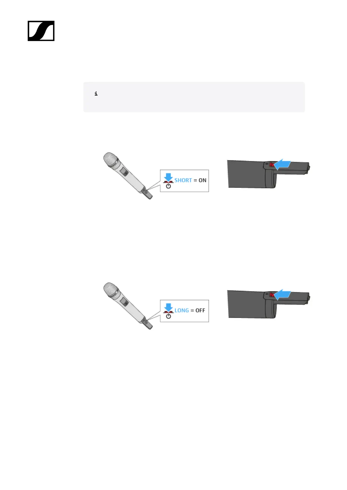 ▷ Short-press the ON/OFF button in the direction of the transmitter body.