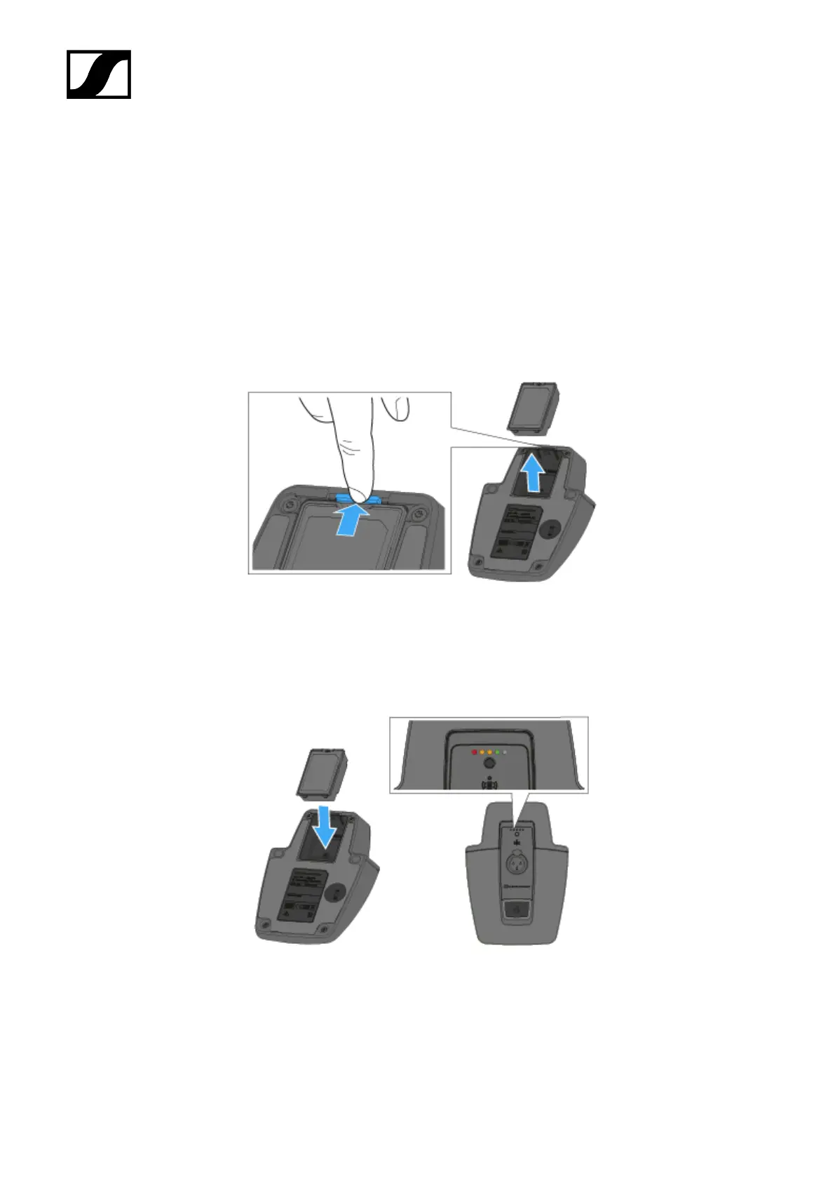 ▷ Slide the accupack into the compartment with the correct orientation until the unlock