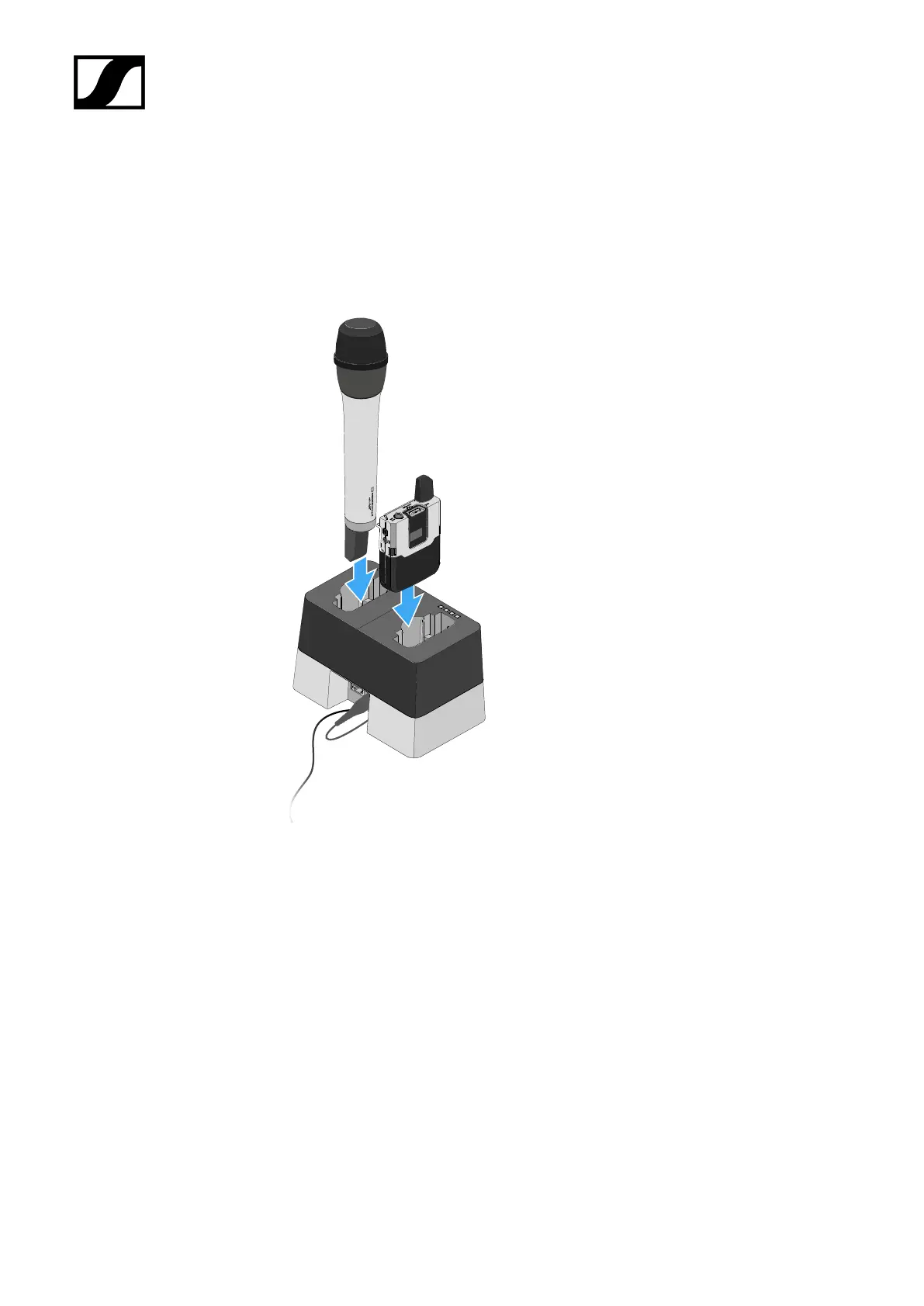 ▷ Insert the transmitter with installed accupack into one of the charger’s two charging