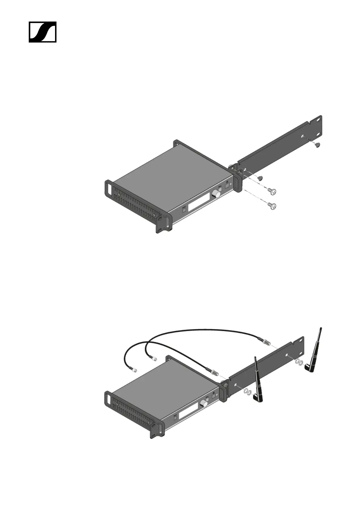 ▷ Slide the receiver with the attached mounting accessories into a 19" rack.