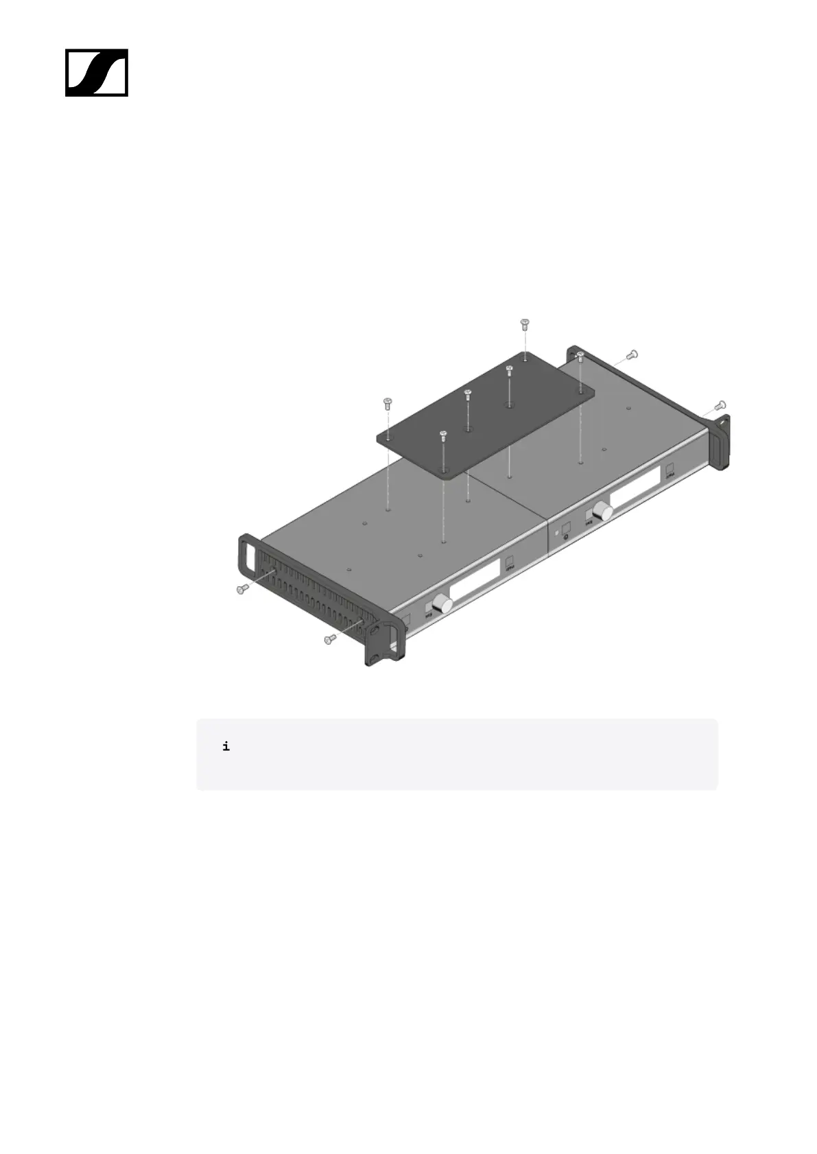 ▷ Secure the mounting angles to the outward-facing sides of the receiver using the