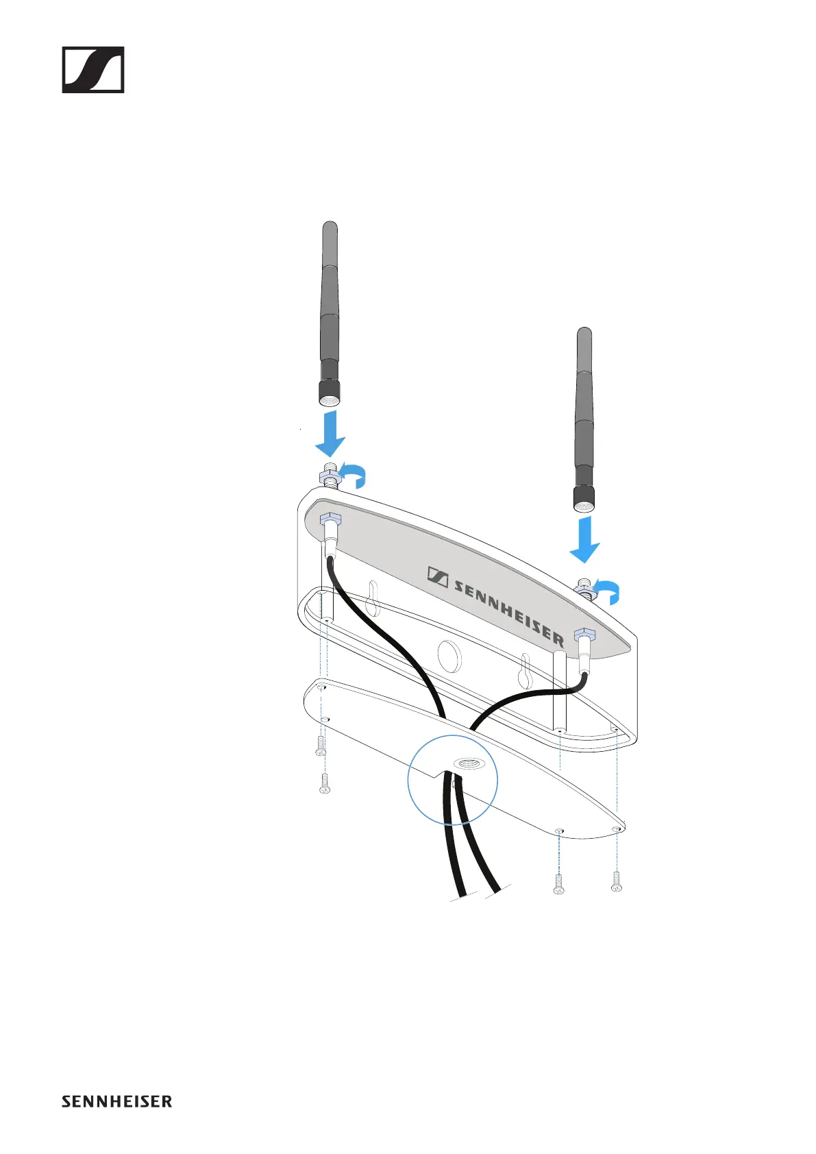 ▷ Screw the sockets to the antenna holes using the supplied