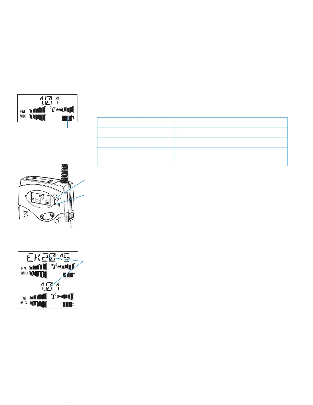 Indications and displays on the receiver