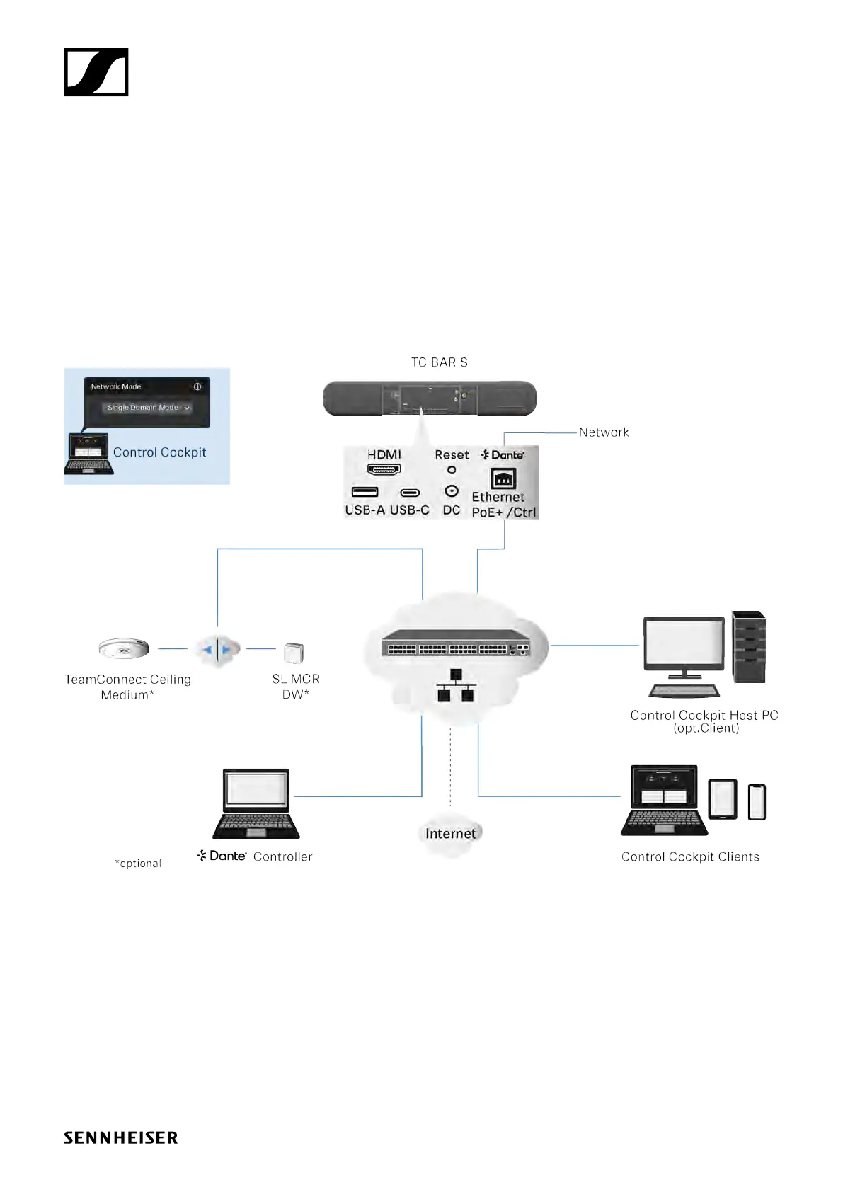 To set up both configurations, you need the Sennheiser Control Cockpit for the control network and