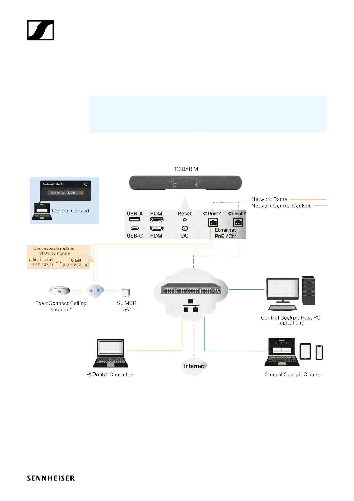 • The other port is used to connect routed Sennheiser devices (e.g. TCC M)