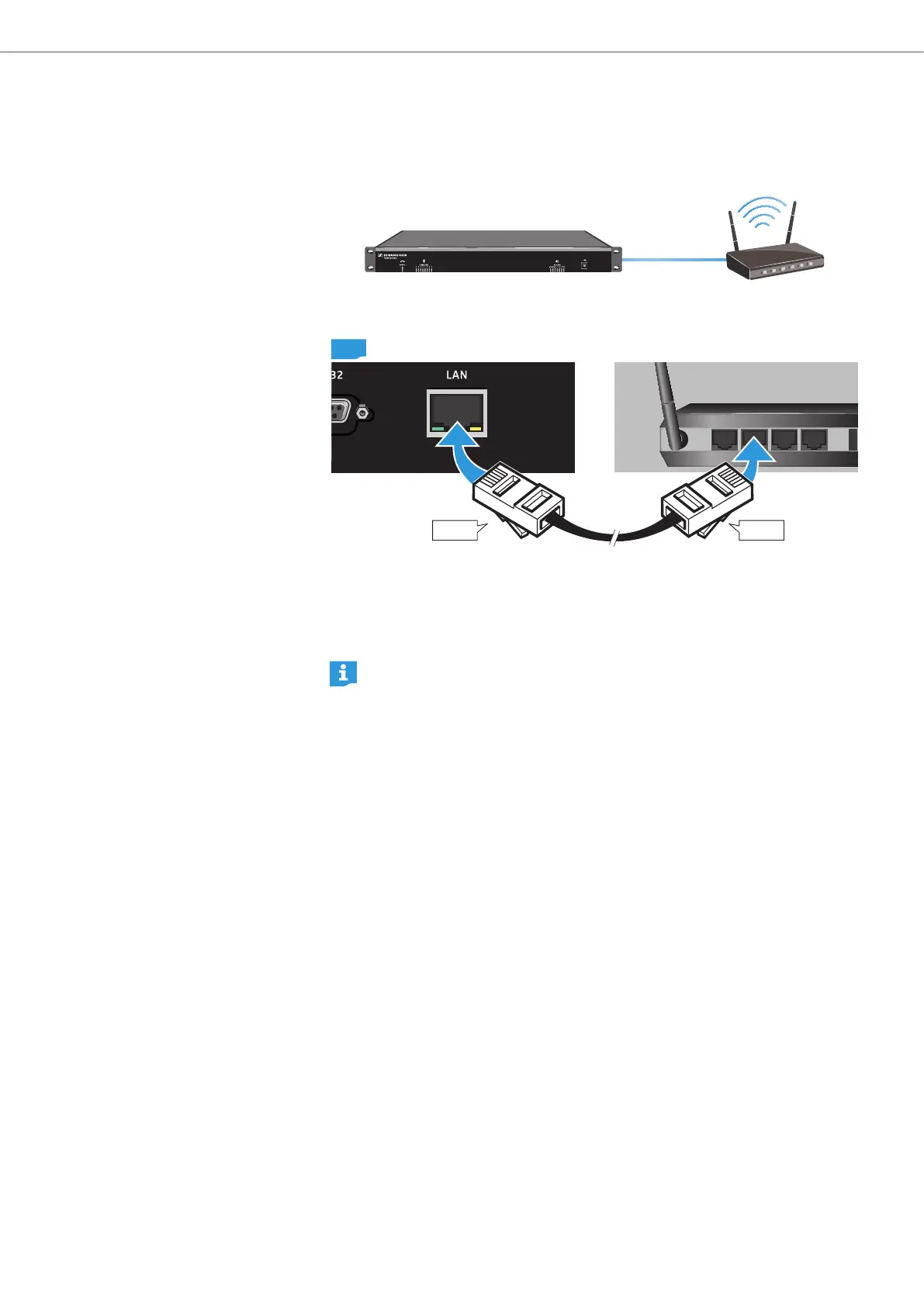 X Plug the other end of the RJ-45 cable into a network socket of the WLAN router.