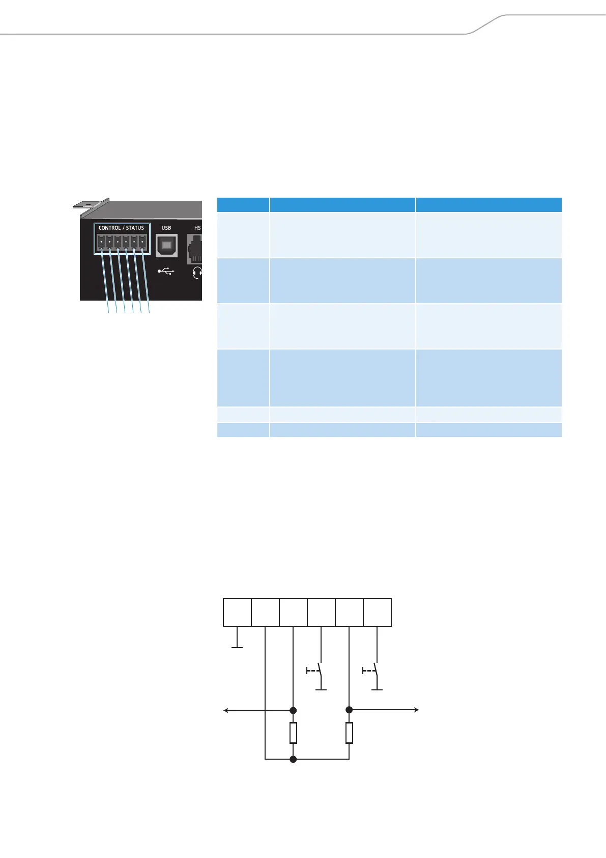 For connecting switches or status indicators observe the following pin allocation: