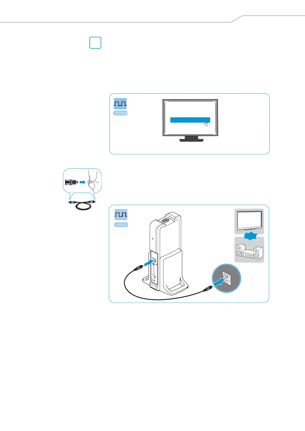 왘 Connect one end of the optical digital cable to the DIGITAL OPTICAL IN