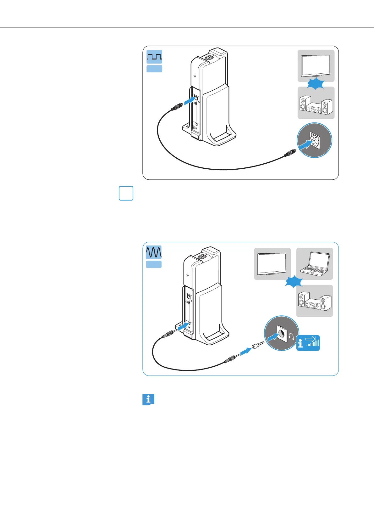 b Connect the stereo audio cable to the 3.5 mm jack socket of the