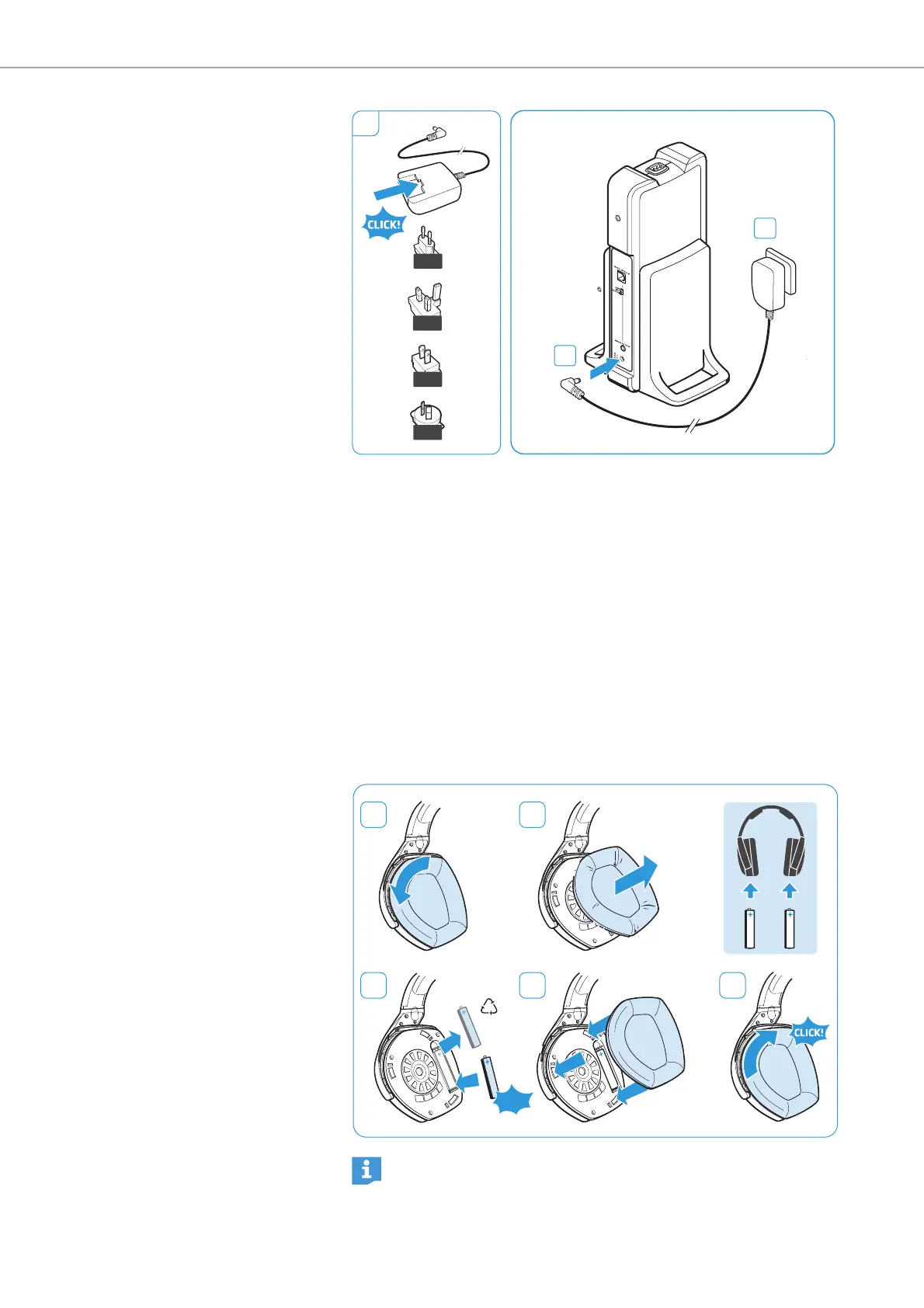 2 Lift the ear pads off the ear cups to reveal the battery compart-