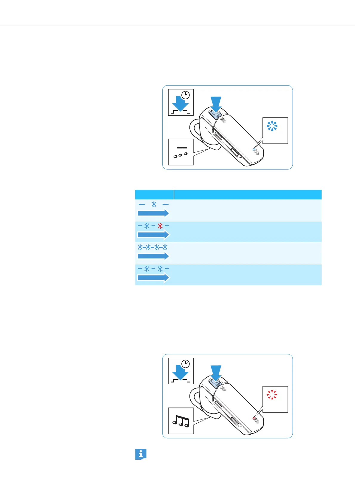 Pairing mode: The headset establishes a connection to a