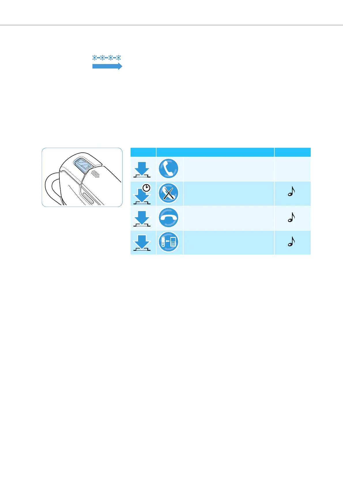you hear a ring tone in the headset and the LED flashes blue 4 times per