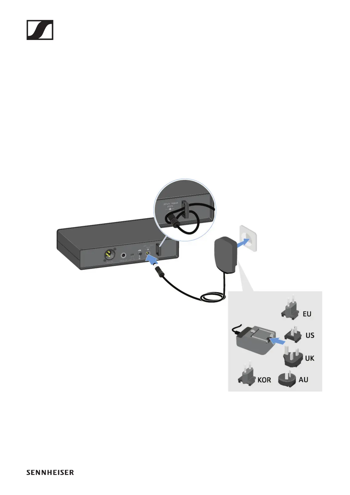 ▷ Slide the supplied country adapter onto the power supply