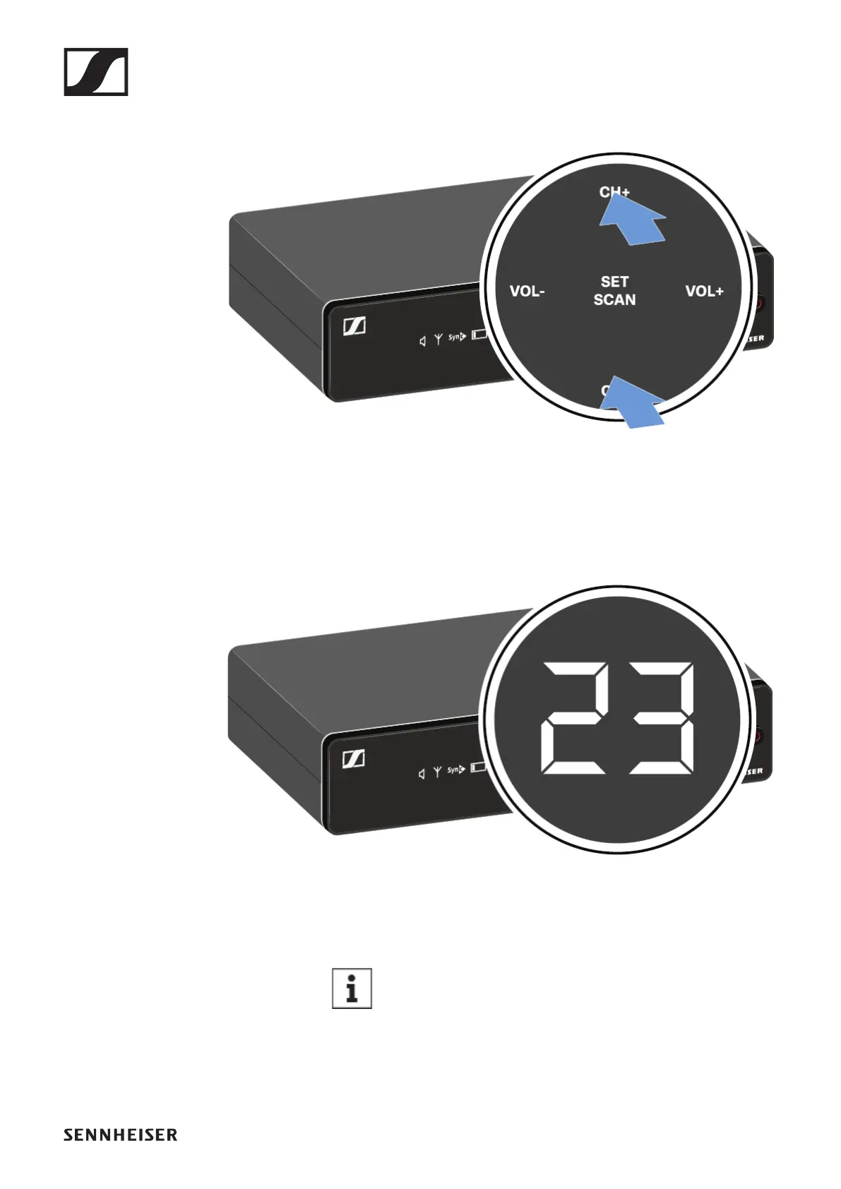 ▷ Press the SET/SCAN button to accept the selected chan-