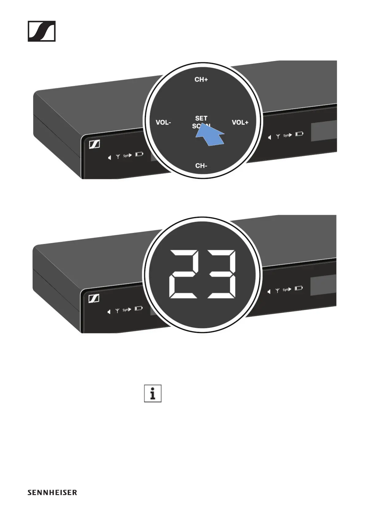 ▷ Press the SET/SCAN button to accept the displayed chan-