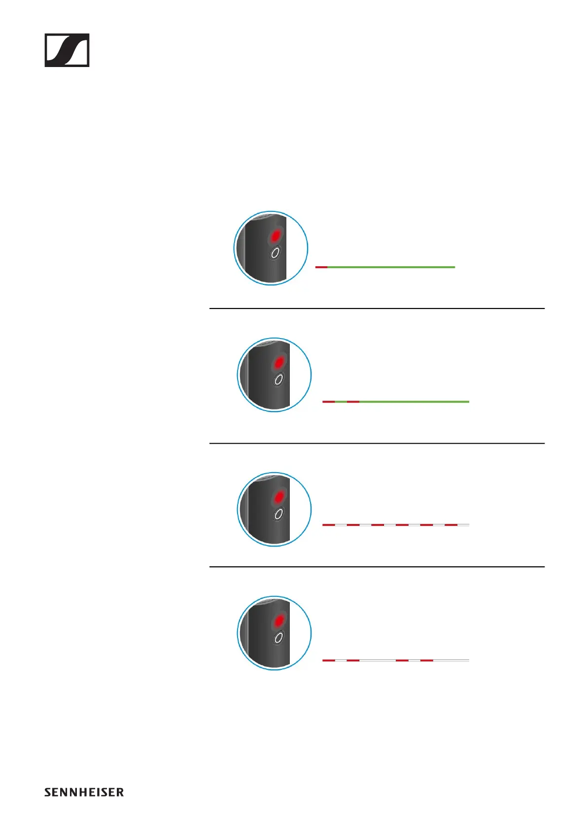 In addition to the local charge level, the status LED on a transmitter or re-
